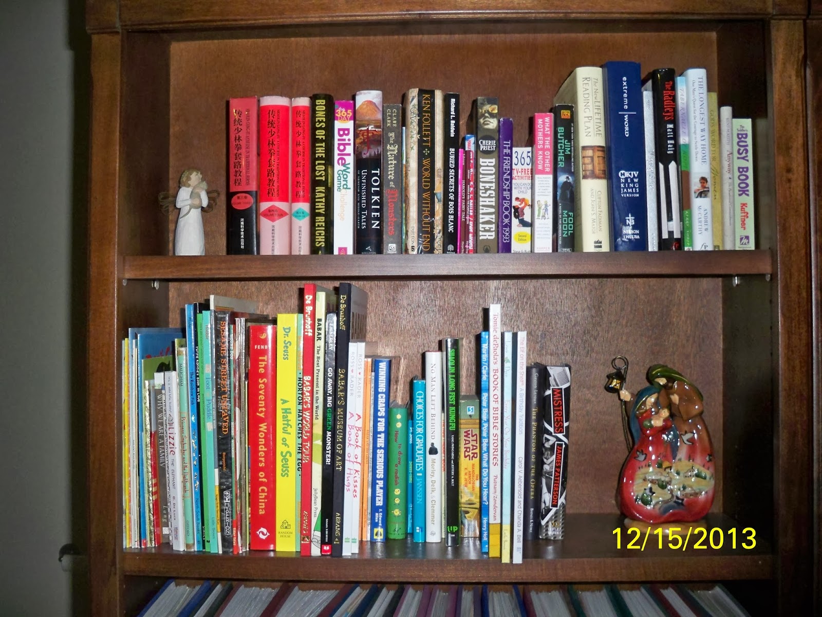 | My Santa's on top...they will be lighted next year after I move the bookshelf out enough to get to the plug. |